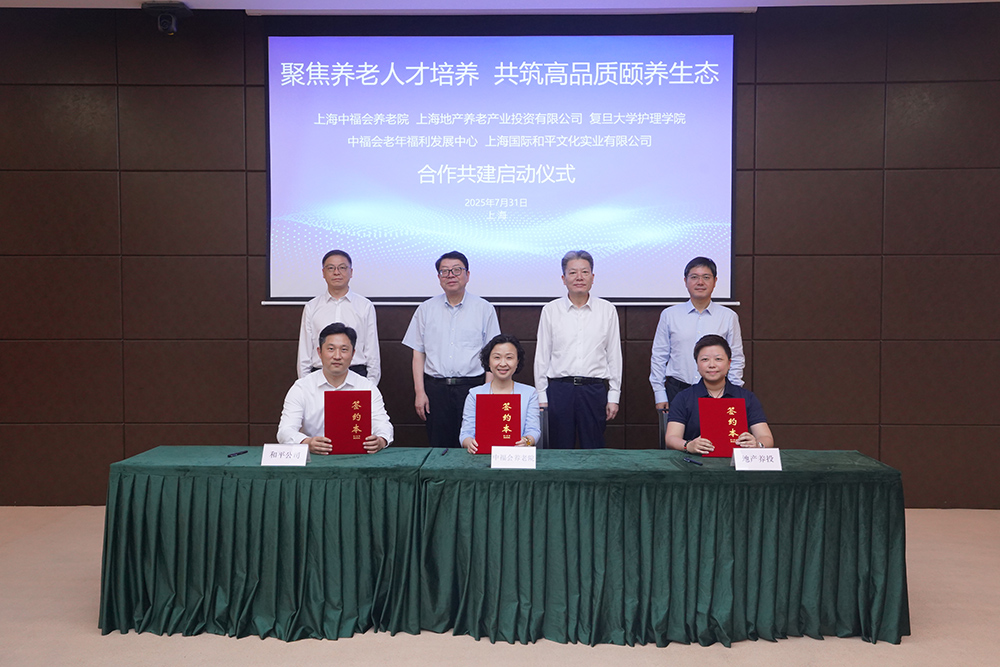 7月31日下午,中福會(huì)養(yǎng)老院、地產(chǎn)養(yǎng)投、復(fù)旦護(hù)理學(xué)院、中福會(huì)老發(fā)中心、中福會(huì)和平公司合作共建啟動(dòng)儀式在上海地產(chǎn)集團(tuán)大廈順利舉行。復(fù)旦大學(xué)黨委書(shū)記裘新,全國(guó)政協(xié)委員、中福會(huì)副主席張曉敏,上海地產(chǎn)集團(tuán)黨委書(shū)記、董事長(zhǎng)黃永平,中福會(huì)黨組成員、副秘書(shū)長(zhǎng)王玉峰,上海地產(chǎn)集團(tuán)黨委委員、副總裁蔣振華,復(fù)旦大學(xué)老齡研究院院長(zhǎng)彭希哲出席。